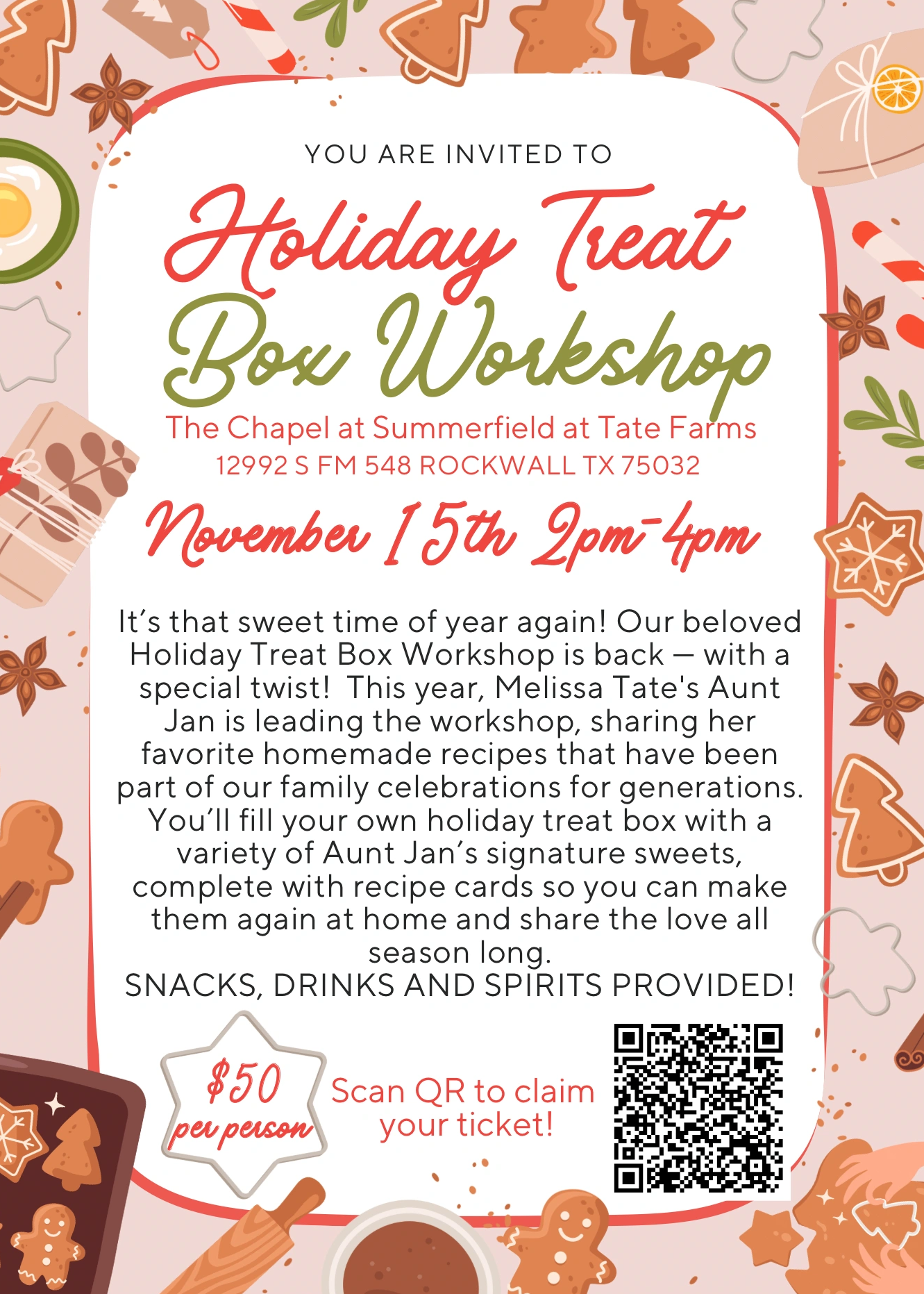 We are so excited to be hosting our Annual Holiday Treat Box Workshop and this time it will be lead by Melissa Tate's Aunt Jan!!! Click below for tickets.
